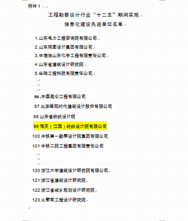2016年11月,我院荣获中国勘察设计协会颁发的“工程勘察设计行业“十二五”期间实施信息化建设先进单位”奖,全国共有123家勘察设计单位获此殊荣。这既是对“十二五”期间我公司(院)实施信息化工作的肯定,也是今后公司(院)不断加速信息化建设的新的起点。