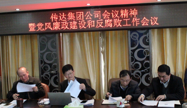 2018年02月07日上午 , 恒天(江西)设计院有限公司召开“传达集团公司会议精神暨党风廉政建设和反腐败工作会议”,班子成员、纪委委员、中层干部、全体党员及入党积极分子参会。本次会议包括六项议程:一、传达集团公司工作会议精神;二、传达集团公司党的建设、党风廉政建设和反腐败工作会议精神;三、传达纤维集团工作会暨党风廉政建设工作会议精神;四、传达集团公司一届九次职代会精神;五、学习我院与集团公司签署的四个责任书;六、与下属企业泰德公司签订党风廉政建设主体责任和监督责任书、与班子成员和中层干部签订廉洁从业承诺书。同时,党委书记陈梁同志和纪委书记许国平同志就落实“全面从严治党主体责任和监督责任”集体约谈下属企业领导班子,就落实“全面从严治党,领导干部廉洁从业”集体约谈院中层以上党员干部。