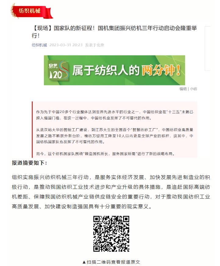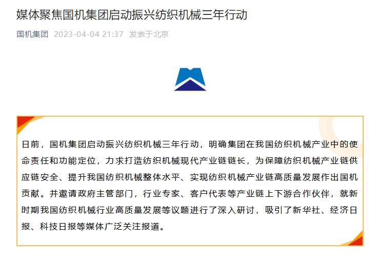 媒体聚焦国机集团启动振兴纺织机械三年行动