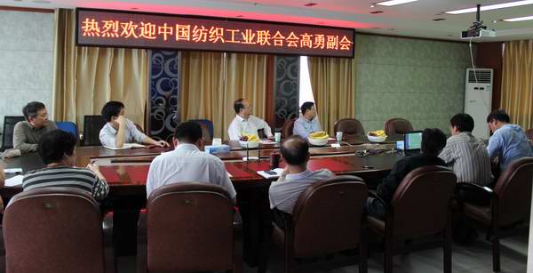 2013年5月15日下午,中国纺织工业联合会高勇副会长、中国纺织机械器材工业协会祝宪民副理事长莅临我院视察,并与我院管理层及中层干部进行了亲切座谈。在听取了陈梁院长的汇报后,高勇副会长对当前纺织行业的市场现状作了分析,结合我院的专业技术特点,为我院今后的发展方向提出了转型要求并指明方向。座谈中二位领导还对于大家关心的技术问题作了详尽解答。